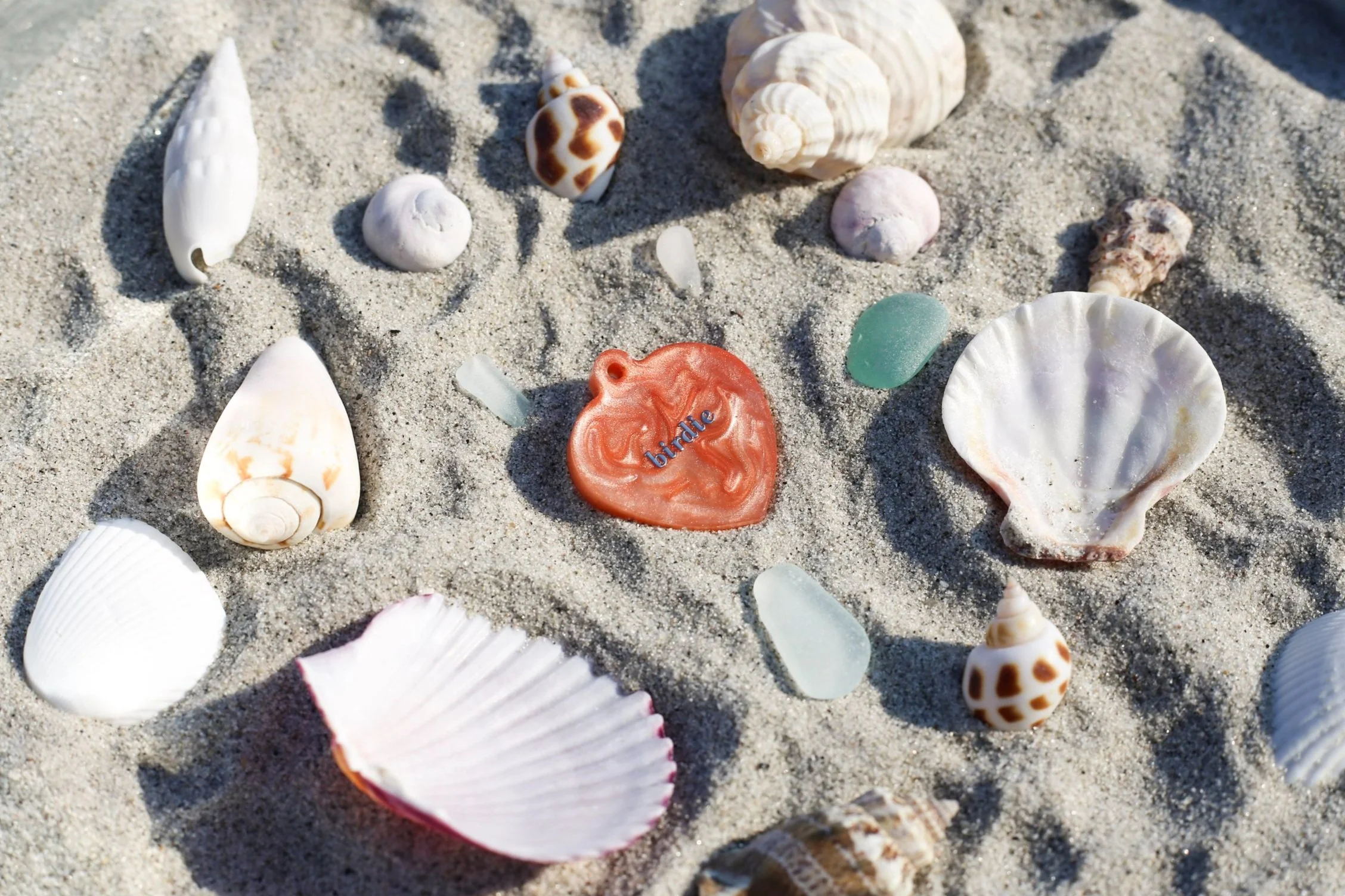 A warm, sunlit tribute to the sea. This tag features Nova Scotia mother-of-pearl and delicate gold leaf throughout, finished with gold lettering. A radiant nod to the magic of golden hour by the shore.